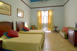 Останавливались здесь в течение 1 ночи в феврале. Отель находится в старом колониальное здание в стиле, который, вероятно, было прекрасным, в его день, но это теперь довольно маленький, обшарпанный отель, немного слишком простоватым, и, конечно, не 3 звезды. Большой контраст после отдыха 4* Iberostar в Гаване. Мы были с группой из 13 во время поездки на Кубу, и в большей части нашей группы был номер, как они не были довольны. Я был в номере 6 на первом этаже. В отеле нет лифта, но крутого лестничного пролета здесь, но дружелюбный персонал поднял наши чемоданы. Номер был маленький, темный и не очень подходил для 2 человек. Там был ужасный запах плесени. В номере была маленькая двуспальная кровать, и было трудно втиснуть по мебели, а также было очень мало места, чтобы назвать свои чемоданы. В номере не было окон только несколько жалюзи, которые выучили внутренний двор. У этих жалюзи не было ни стекла, за ними, так что, если вы сделали, чтобы они открылись, вы были уязвимы для комаров, и слышен весь шум от гостей внизу, грохота из ресторана и кухонь и птиц с их утренним хором. В номере был телевизор, плюс ржавые старый холодильник. В шкафу был сейф.Была большая, но старая ванная, без места на туалет и душ в стиле открытой душевой в конце ванной, а это означало, что туалет и везде было очень влажно после душа. Было несколько бесплатных туалетных принадлежностей, фен и крошечных банных полотенец - размер большое полотенце для рук. Розетки здесь были круглыми, континентальный, с двумя переходник – 220. В отеле также была очень шумная канализация, которая разбудила нас утром. Одна пара из нашей группы принимала душ вечером и не могли выключить воду. Персонал выглядел, но сказал, что, так как это был вечер воскресенья техник по обслуживанию оборудования не призовет до утра понедельника. Это означало, что душ оставлен, работали горячей водой всю ночь. Один из гостей в этом номере не мог вынести звук душа, поэтому девушка спала внизу в комнате отдыха на диване, так как нам сказали, что не было никаких запасных номеров, доступных, чтобы проветрить их. Затем, конечно, у нас не было горячей воды утром и должны были иметь холодный душ.Ресторан в отеле был хорошим, но ничего особенного, но персонал не был дружелюбным. Завтрак был нормальный, но не очень предлагающийся. Обслуживание официантов. В отеле нет Wi-Fi