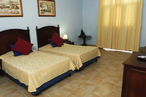 Это - очень хороший местный кубинский отель в старом отремонтированном доме, построенном вокруг симпатичного внутреннего двора - мы останавливались в течение одной ночи, номер был очень хорош (номер 3, я думаю) на фронте, стоящем перед площадью; у этого был номер ставки с огромным платяным шкафом и от этого небольшая, но хорошая ванная, и огромная спальня. = с Телевизором, мини-бар, двуспальная кровать. Проблема для нас - и это окрашивает нашу оценку качества сна! - был то, что мы были неделей, когда город готовил к их ежегодному фейерверку Сочельника "борьбу", и одна сторона строили их витрину прямо вне нашего окна. Хотя это остановилось о полуночи, в 3:00 мы были разбужены группой и крекерами огня и большим количеством празднующего шума - мы позже обнаружили, что это было эскортом от железнодорожной станции для горожан возвращения, кто прибывал для / отпуска "борьбы" фейерверка. Это было столь шумным, что это походило на белый шум, и мне удалось вернуться ко сну, но не так мой муж. Это было просто тем от проблемы, и это - отель, очень подлинно в симпатичном месте.