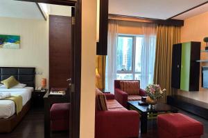 Старенькая гостиница, с такой же мебелью... на этом минусы закончились. Хорошее месторасположение, молл и набережная (Marina bay) через 2 здания. Есть этажи для не курящих, довольно чисто, что для меня очень важно! За уборкой на моём этаже следила Fatima, ей отдельное спасибо🥰 Просторные квартиры, с кухонной зоной и стиралкой. Есть бассейн, спорт зал и даже небольшая сауна. Жила тут 3 недели, свою стоимость полностью заслуживают.