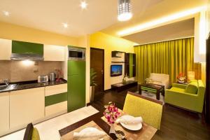 Замечательный персонал, отличное обслуживание клиентов, ничего особенного, от ресепшн, рестрикт до ведения домашнего хозяйства Центральное место. Хорошо оборудованная кухня, полноразмерный холодильник, стиральная машина (стиральный порошок, поставляемый домработницами) бутилированная вода и принадлежности для ванной комнаты пополняются ежедневно. Завтрак был континентальным. Бассейн замечателен, но осознайте, что солнце блокируется высокими зданиями вокруг него после обеда. Приложение с 1 спальней и кроватью в лагере для 3-х человек. Матрас был неудобен, домработница даже получила нормальный постельный матрас.
