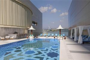 Очень куртой отель, отзывчивый персонал, качественная еда и хорошее состояние отеля. Хороший wifi в номере, работает все превосходно. Большой бассейн с подогревом и отличным видом на залив. Вкусный завтрак. Собственный песчаный пляж, дно не могу сказать что приятное, но оно такое везде в Дубае.