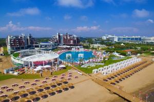 Отель красивый, сервис слабый Отдыхала с двумя детьми (15 и 9 лет). Очень красивый отель и территория, но есть нюансы. Плюсы: Ненавязчивая анимация. Питание прекрасное. Большой выбор блюд, все вкусно и свежо: очень много разной рыбы, креветки, кальмары. Ресторан работает круглосуточной. Есть бар со свежевыжатым соками (морковь, яблоко, апельсин, гранат..). При бронировании более 7 дней можно сходить по меню, бесплатно один раз в ресторан: итальянской, турецкой кухни или рыбный. Аквапарк детям понравился, безопасный, дети ходили сами каждый день. Жили в Family Room — это номер в отдельно стоящих таунхаусах, 2 комнаты (спальня и детская с двум кроватями) до 5 человек. Минусы: - Рядом с отелем стройка. Когда поднимался ветер, вся пыль летит в сторону танхаусов. - Нехватка лежаков у бассейна. - Потек кондиционер, ремонт сделали через сутки. Оторвалась ручка от двери, за неделю не сделали. - Персонал: ощущалась холодность. Обслуживание формальное. Рекомендация: при бронировании уточните, далеко ли номер от стройки, и просите размещение в основном корпусе или таунхаусах в противоположной части от стройки. Вернуться в отель, есть желание.