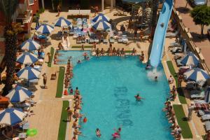 Мы отдыхали с семьей с 7 мая по 14 мая. Вообщем отель не плохой. Работает горка для детей. но на ней катались и взрослые. Кормили не плохо. Часто даже была баранина, рыба. Курица всегда была. Много зелени, приправ на любой вкус. Каждый вечер давали мороженое турецкое очень вкусное. Но что плохо так это мало фруктов яблоки и апельсины, хотя у них сейчас сезон арбузов мушмулы,абрикосов,черешни и клубники это в ресторане не было. Анимация работала почти каждый день как взрослая так и детская. Вход на пляж через подземный переход. Там на пляже сидит турчанка и печет лепешки турецкие вкусные и бар с безалкогольными напитками. Вход в море плиты надо быть осторожными во время волн при заходе в море, а так я спокоино заходил в море и купался. Лежаков всем хватало. На самой територий отеля работает только один бар с алькогольными напитками и очень часто там образуется очередь. В общем отель не плохой есть конечно минусы, но это же не дорогой отель - он стоит этих денег