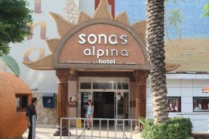 Sonas Alpina Beach или ,как сейчас она называется Аlpina Club. Отель открылся 8 июня, весь прошлый сезон был закрыт. Мы оказались в первой пятерке гостей. Так как отель расположен в поселке Махмутлар, дорога от аэропортаАнталии с заездами в другие отели, отняла 3, 5 часа. Прибыли на место мы в 12 ночи, и, надо отдать должное, нам тут-же предложили поздний ужин. Вместо стандартного номера на двоих мы получили семейный двухкомнатный номер с чудесным видом на море. Номера, сразу скажу, мега бюджетные, но все чисто, сантехника новая и рабочая, кондиционер тоже, хотя мы им не пользовались, тк температура воздуха была более чем комфортная 27градусов и легкий ветерок, но ,думаю, так врядли посчастливится тем, кто будет отдыхать позже в самую жару.Отель на 1 береговой линии, имеется собственный подземный переход. Пляж довольно просторный, пантонов там нет, вход в море через вырезы в камне. Возможно, когда отель был заполн ен на 100%, было тесновато везде, к примеру, на территории только один бассейн, но не в нашем случае. Туристов сейчас в Турции очень мало, большинство отелей закрыто.Персонал приветливый, уборка каждый день, постель за 6 дней 3 раза поменяли. Все необходимые мыльно- рыльные принадлежности имеются. Питание предполагалось All Inclusive, но тк нас всего было человек 25, то официанты подносили каждому смену блюд,от порции второго иногда отказывались, брали одну на двоих, тк столько съесть невозможно) Готовят вкусно, правда, завтраки одинаковые как под копирку.Из фруктов: нектарин, арбуз, дыня, черешня, клубника, апельсины. Из напитков на баре: пиво бутылочное Tuborg ,водка, джин, раки. Весь лимонад бутилированный. В перерывах между приемами пищи пекут лепешки. Спортзал еще не работал, но он есть. Анимация тоже скоро будет.Рядом масса всевозможных магазинов. Мы съездили на экскурсию: каньон, багги, рафтинг. Просто супер, эмоции зашкаливают.Отдельно хочется упомянуть хамам , что при отеле. Там работают настоящие мастера своего дела!! Очень рекомендуем!И, конечно же, просто замечательно, что мы узнали о туристическом ресурсе АДВАНТ, благодаря которому мы сами себе турагенты. Гости отеля,даже те, кто считал, что они прилетели дешево, узнавая , во сколько нам обошёлся тур, не ус тавали удивляться, и ,естественно, мы делились с ними информацией.Приятного всем отдыха!