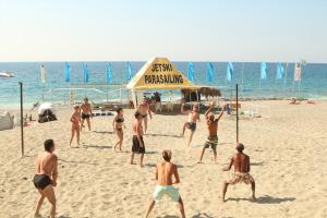 Мы отдыхали в начале июля и очень остались довольны.Люди не верьте,что пишут плохие отзывы,кому не нравится пусть идут в отели 5***** хотите чтобы дёшево было и все классно и писать всякие гадости,лично мы очень благодарны персоналу,кормят отлично,шведский стол.У нас был номер на четверых,комнаты очень большие окна выходили на море очень красиво,правда мебель староват,но нас это не беспокоило,убирались каждый день.Насчет питания,на самом деле люди кидаются как будто останутся голодными и набирают по много и оставляют, это со стороны смотреть очень стыдно за нас,ведь там никого не оставят голодным,столько разнообразий,все попробовать невозможно.Аниматоры каждый день,интересно и весело и детей не оставят без внимания,мультики,дискотеки и конфетки.Сначало по отзывам расстроились,думали все плохо,а потом когда сами увидели обрадовались,что это все неправда,очереди бывают везде,я не скажу что часами ждали минут 5-10 и все за столом.Фрукты каждый день.Базар тоже по близости,если самим покупать,дёшево и что хочешь пожалуйста.Насчет пляжа,надо сразу приобрести коралловые тапки,чтобы не повредить пальцы ног,камни большие,если аккуратно и можно обойтись,вообщем все классно,море чистое,шезлонгов хватает.Спасибо большое всему персоналу!!!Действительно Вы работаете все для нас ,стоит отдыхать дёшево и классно,ещё раз спасибо!!!!!