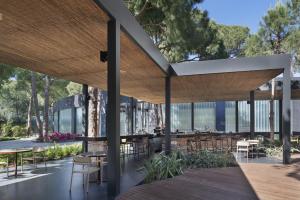 Прекрасный отель с чудесной зеленой территорией, утопающей в соснах и елях. В декабре грели два уличных бассейна: у рыбного ресторана и у корпуса А. Детский клуб работал в отдельном здании у...Развернуть