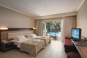 Здравствуйте, у нас был семейный отдых в этом отеле. Первое впечатление было приятным, но есть некоторые моменты, на которые я бы обратил внимание Плюсы: - море, пляж великолепны, места хватит всем, не обязательно занимать место на пляже в 6 утра - еда, еды хватит на всех, действительно изысканных блюд не было, но еда вкусная и в достаточном количестве - территория большая, зеленая, бассейн находится в соснах Минусы: - в течение 7 дней отпуска помещение убирали дважды, мусор просто накапливался и девать его было некуда - детская анимация очень поздно, детские шоу в 22 года : 00 детей уже должны спать в это время, мини-дискотека каждый день на новом месте и нужно бежать и искать, где дискотека - а главное, отель не заботится о вас и вашем отдыхе. В отеле проходит свадьба, очень громкая музыка играет прямо под окнами в течение половины ночи. А если вы думаете, что персонал хотя бы извинился за доставленные неудобства, то нет. "это только один раз во время отпуска, вы можете это терпеть", а когда мы объяснили, что приехали из Украины и что шума у нас дома хватает, то получили еще комментарии от персонала "там уже тихо и войны нет" Море действительно великолепно и может покрыть минусы не уборки каждый день, минусы в анимации, но я никогда не встречал такого пренебрежительного отношения к отдыхающим. Я не рекомендую этот отель, особенно украинцам, мы заслуживаем лучшего